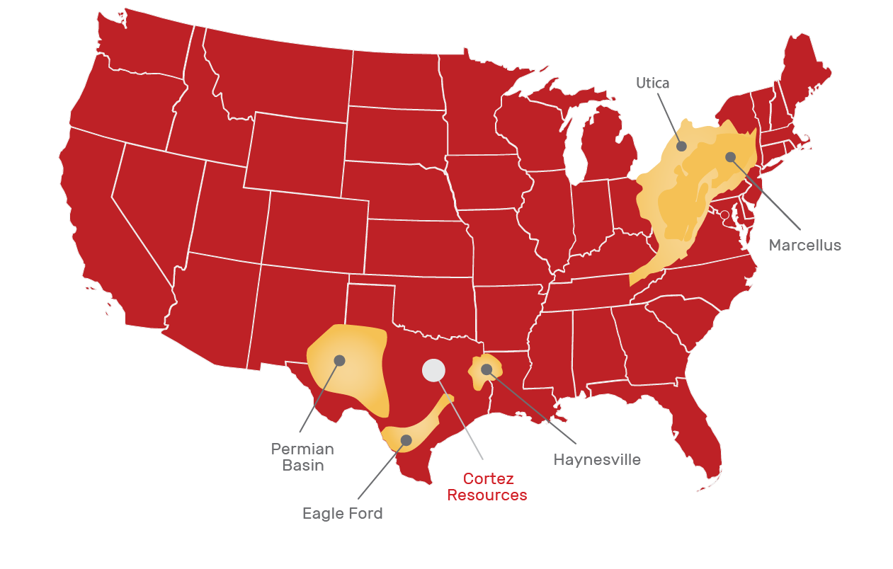 Cortez Resources is a private oil and gas exploration and production company focused on prospect generation and leasehold, mineral, and royalty acquisitions. Our assets span over 700,000 gross acres across the United States, under multiple active basins, and we currently have interests in over a thousand wells. We are always looking to grow our portfolio and are currently targeting assets in the Permian basin and Gulf Coast region, as well as other unconventional plays in the lower 48 United States.